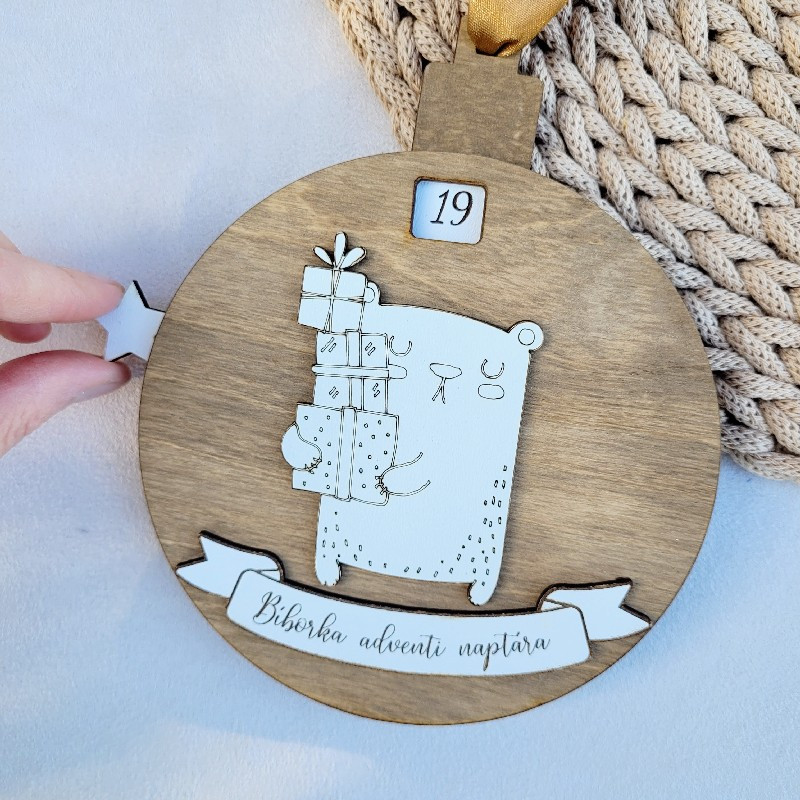 Megjegyzésben meg tudod adni, milyen gravírozással szeretnéd. (Több gyermek neve is elfér, vagy pl.: "Molnár család adventi naptára", de egyszerűen az "Adventi naptár" felirat is lehet).