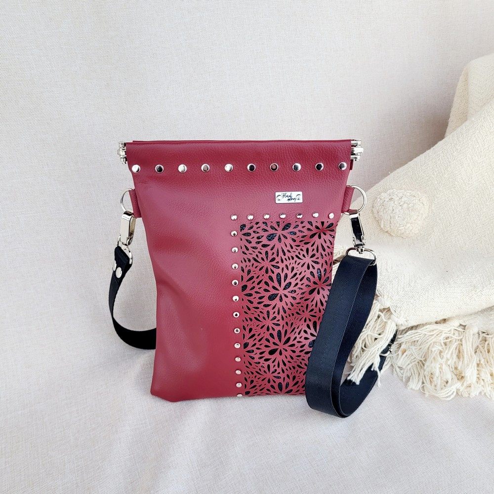 Lézervágással és szegecses összetűzéssel készül, így extrán tartós. Vegán, kiváló minőségű textilbőr, ami kézzel, enyhén szappanos vízzel tisztítható.
