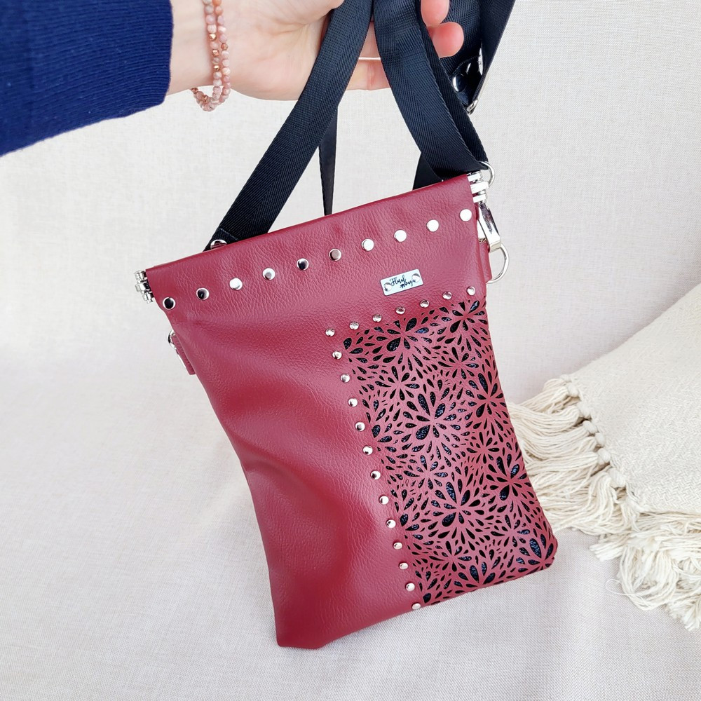 Színe fémes burgundi és fekete, mérete: 17 x 23 cm