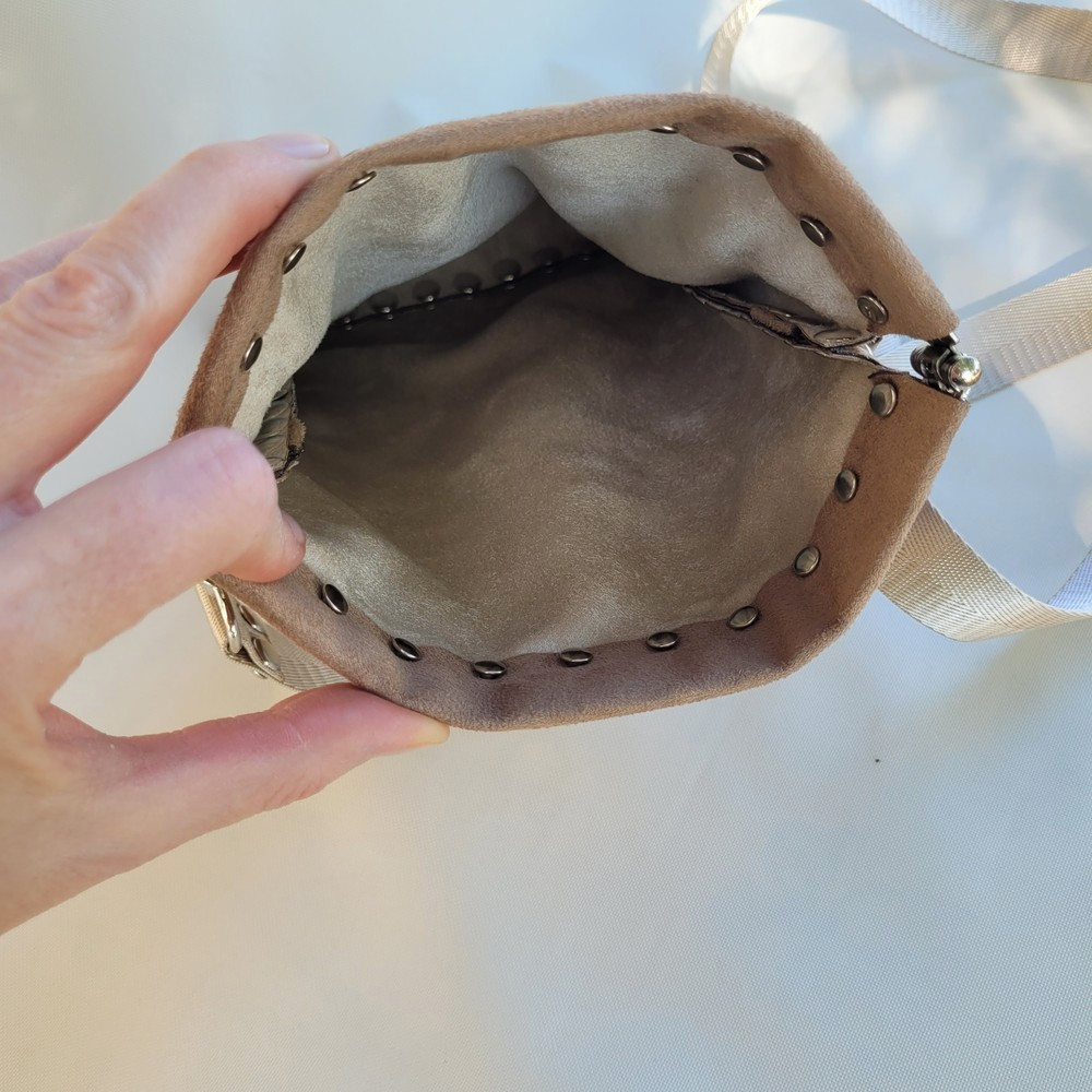 Csinos, kisebb méretű crossbody táska, különleges, erős fém zárral, amit csak szét kell pattintanod és egy mozdulattal összecsukni.