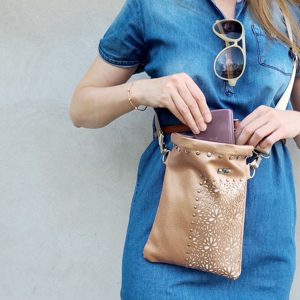Lézervágással és szegecses összetűzéssel készül, így extrán tartós. Vegán, kiváló minőségű textilbőr, ami kézzel, enyhén szappanos vízzel tisztítható.