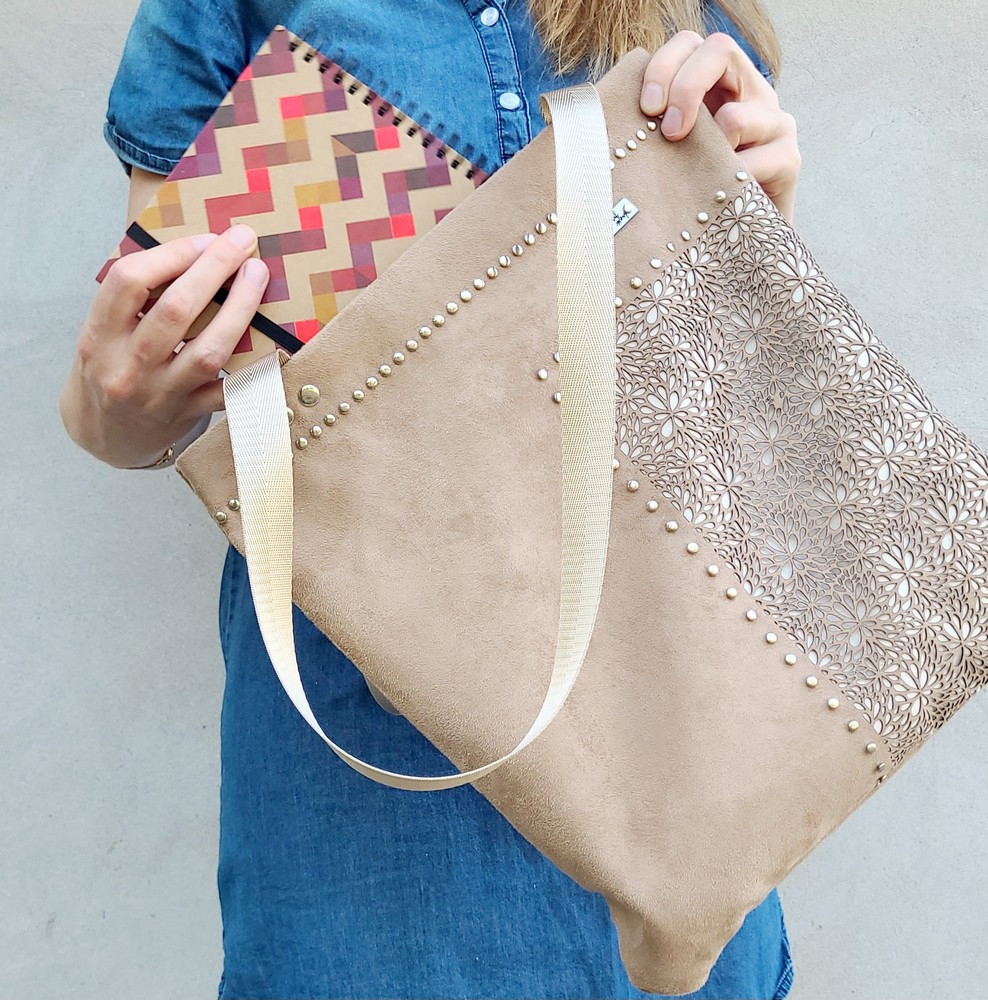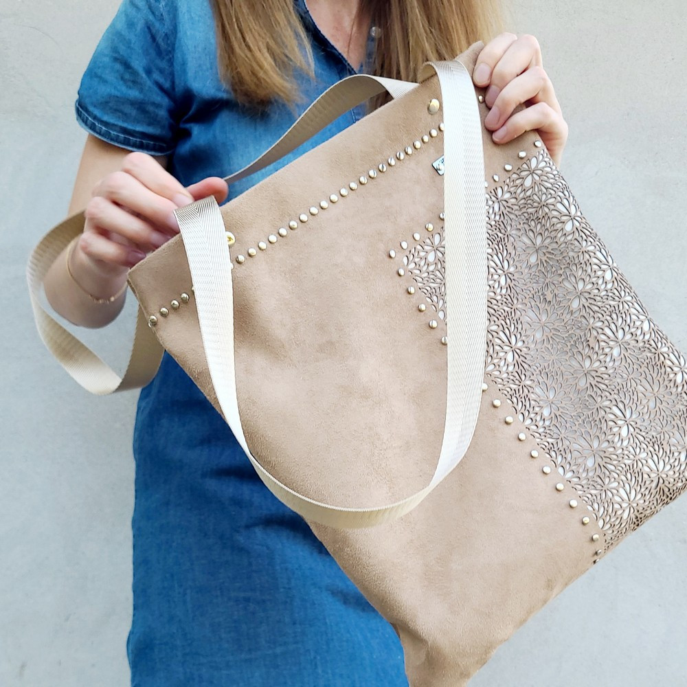 Kényelmes, könnyű válltáska mutatós lézervágott mintával.