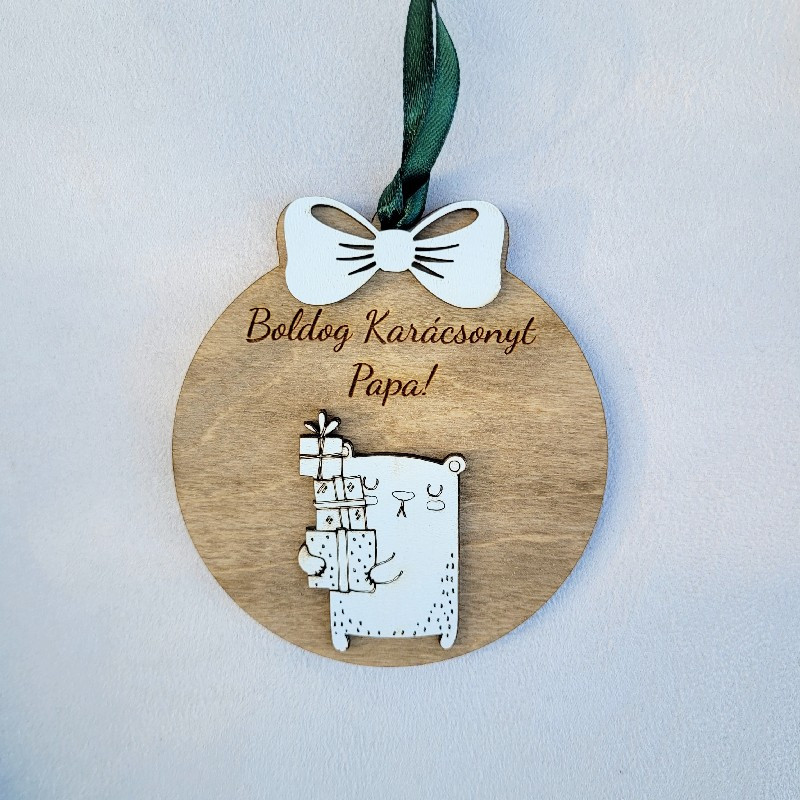 Egyedi gravírozású fa karácsonyfadísz