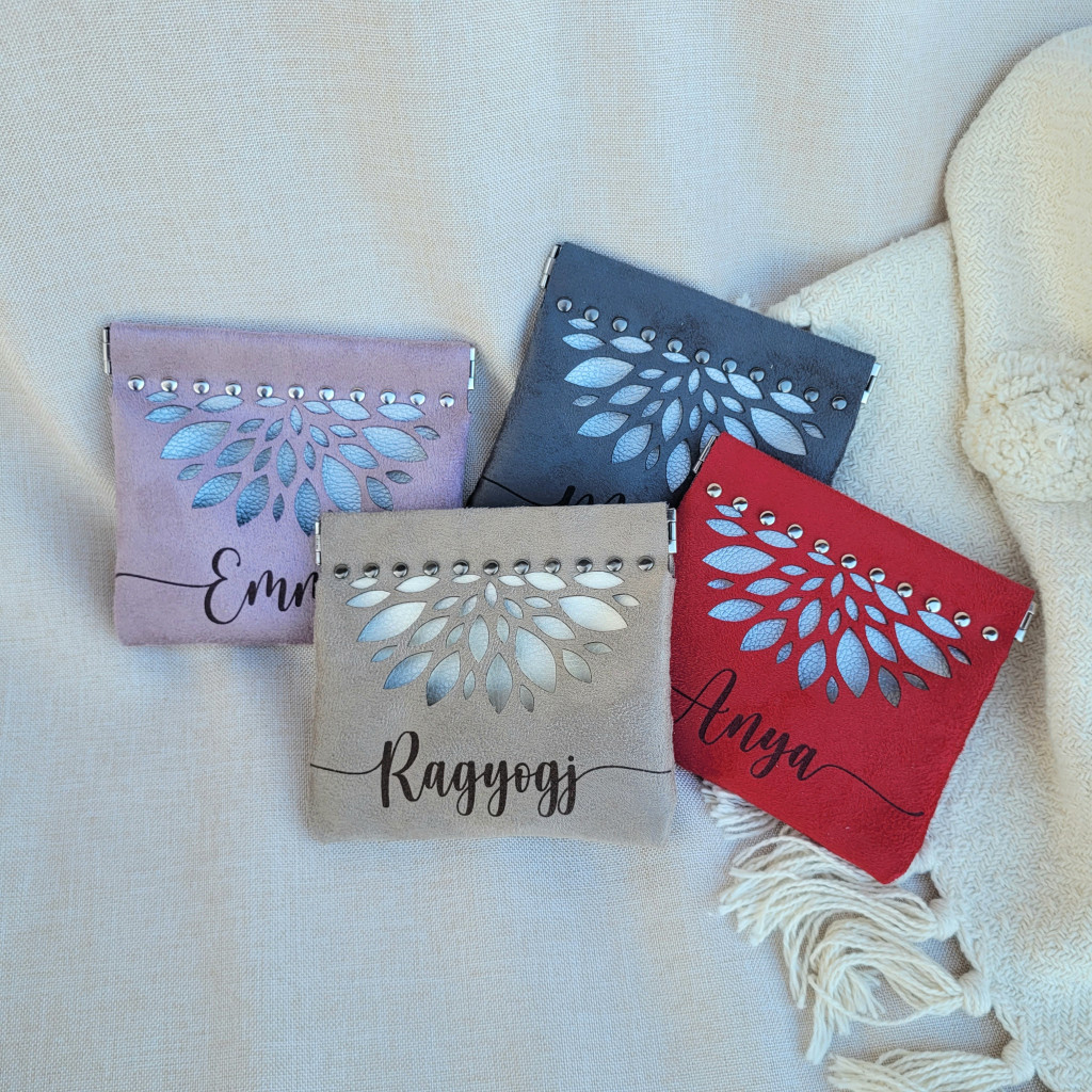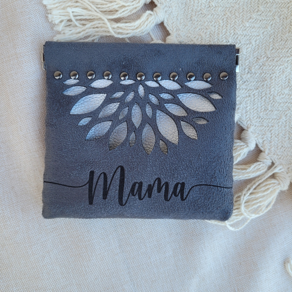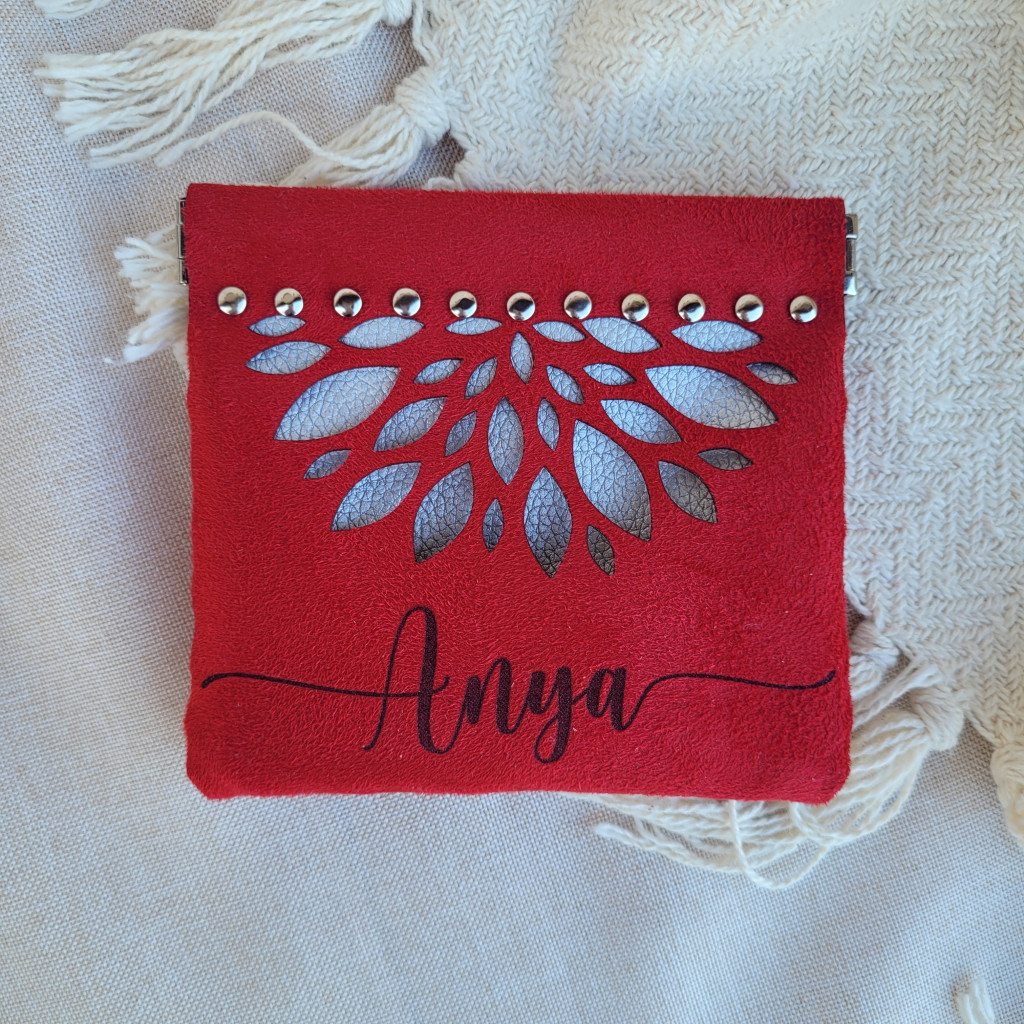 A puha textilbőr lézervágott mintával díszített, pattintós zárral egy mozdulattal nyitható és csukható.