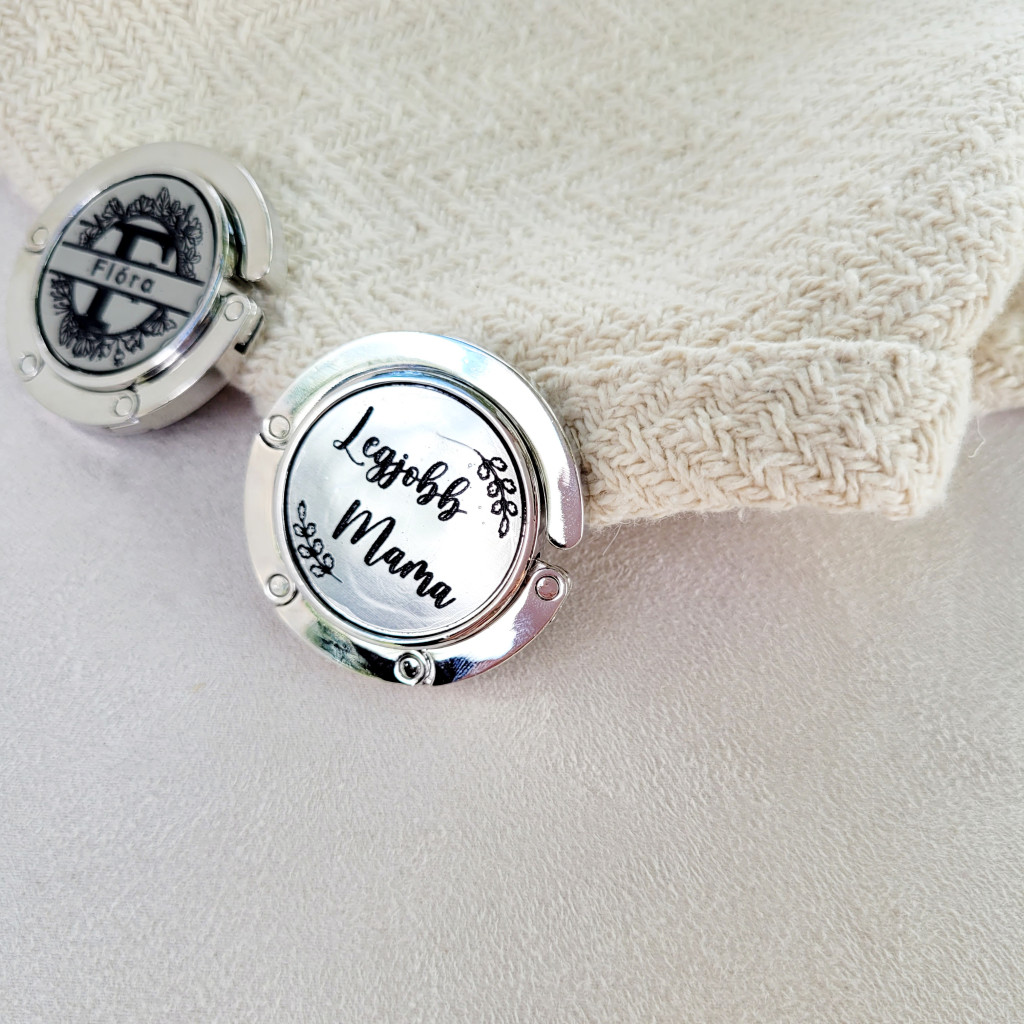 - a táskaakasztó grafikája kétféle lehetőség közül választható (Monogram egy névvel vagy 1-4 szavas szöveg növénymintával.)